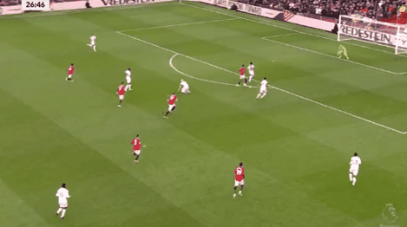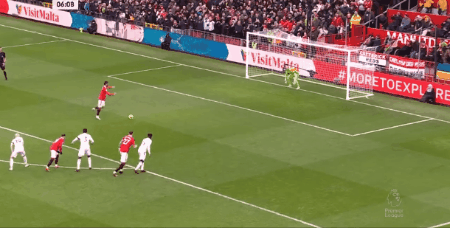第4分钟,拉什福德从左路起脚传中,休斯在禁区内手球犯规,主裁马里纳在场边看完视频回放后指向十二码,布鲁诺·费尔南德斯小跳步骗过瓜伊塔,点球稳稳射中。17天内,B费第二次攻破瓜伊塔把守的大门。