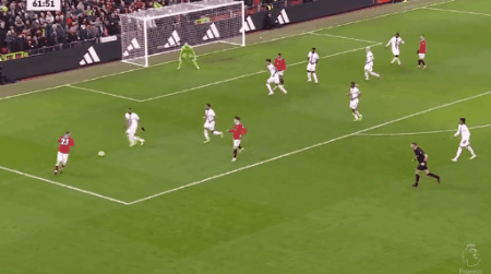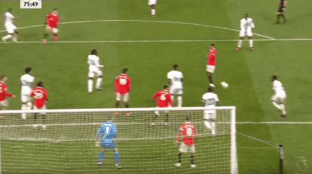 第27分钟,布鲁诺·费尔南德斯斜塞禁区,拉什福德在理查兹的骚扰下强行射门,瓜伊塔将球免强扑出底线。