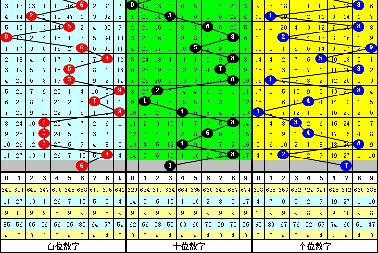 百位:上期开出8,近10期012路比为5:1:4,其中2路号遗漏6期再出,本期祛除2路号,和顺0路号,看好6。